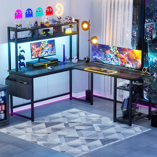 View full detailsL-Shaped Desk with Power Outlet, LED Light & Hutch - Reversible, with Monitor Stand, Storage Shelves