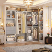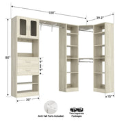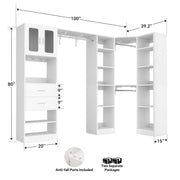 100 Inch L Shaped Closet Organizers and Storage System with Drawers and Corner Closet