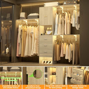 Closet Organizer System with Doors: Our 8FT closet systems with doors are designed to give your wardrobe some privacy so you can store your personal belongings. This heavy-duty wardrobe rack with doors is made of high-quality board, this closet system has 3 hanging rods that can hang long dresses, T-shirts, suits, jackets, and bedding in this freestanding closet system. Load capacity up to 1000 lbs+, you can put about 400+ pcs of summer clothes.