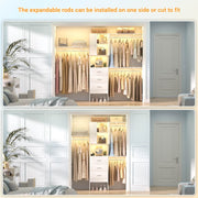 Customize DIY Walk-in Closet: As the hanging rod is expandable and the shelf tower is detachable, you can install this walk-in closet to a customized closet system for your room space. It can fit the 5 feet to 8 feet wide closets, and you can also install only one side of the unit for your smaller closets too. It is super easy to customize.