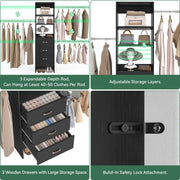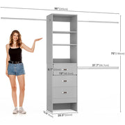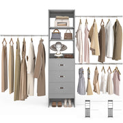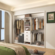 21 - 96 Inch Adjustable Closet System with 3 drawers, Hanging Rods, Storage Shelves