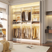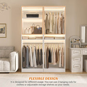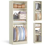 Transform your space with our versatile closet system, designed to provide a neat and organized solution for your clothing and accessories. Constructed with high-quality wood board, this free-standing unit ensures durability and stability. It features two hanging rods and multiple shelves, offering ample space to hang various garments and store items of different sizes. The flexible design allows you to adjust the configuration according to your needs, making it perfect for any room in the house, whether it's for a home closet, office storage, or other settings. Experience the convenience and efficiency of a well-organized space with this stylish and functional closet system. If you want a longer hanging space, you can choose to hang the rod as high as possible during installation.