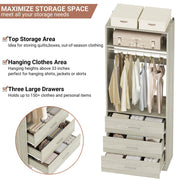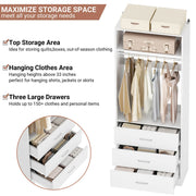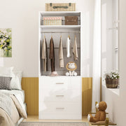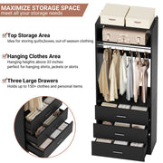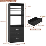 2FT Freestanding Walk in Closet System with 3 Wooden Drawers, Hanging Rod & Shelves
