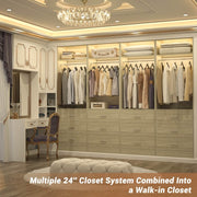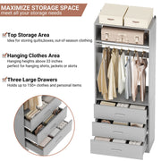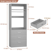 Aheaplus 24'' Walk in Closet System with 3 Wooden Drawers, Hanging Rod & Storage Shelves - Ideal Storage & Organzier System for Bedroom, Closets