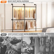 3.5 - 13 FT Wall Mounted Industrial Metal Pipe Clothing Rack, Reversible