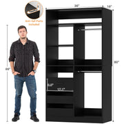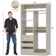 36'' Walk in Closet System with 3 Drawers, Hanging Rod & Storage Shelves, for Bedroom & Closets