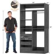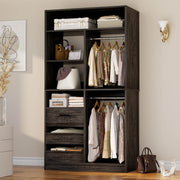 Aheaplus 36'' Freestanding Walk-in Closet System with 3 Wooden Drawers, Heavy Duty Closet Organizer System with Hanging Rods and Storage Shelves