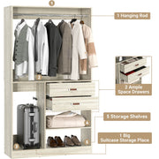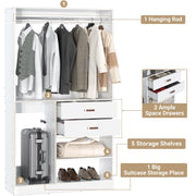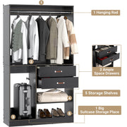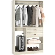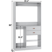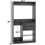 40'' Freestanding Closet Organizer System with Hanging Rods, Drawers, Storage Shelves