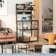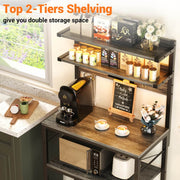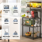 Multi-Functional Bakers Rack with Power Outlets: Stay powered up with our kitchen storage shelf featuring 3 AC outlets and 2 USB charging ports, allowing you to charge up to 5 devices simultaneously. Perfect for coffee makers, bread machines, and more—no more searching for power sources. Keep your kitchen tidy and efficient with this versatile addition.