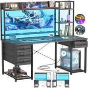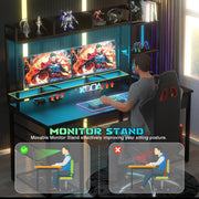 LED Gaming Desk with Customizable Lighting: Elevate your gaming setup with vibrant LED lights offering over 60,000 color options and multiple flashing modes. Sync the lights to your music or set a timer for a personalized experience. This desk adds a dynamic touch to your space, perfectly matching any interior theme or aesthetic.