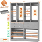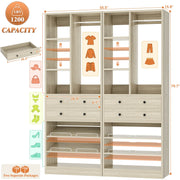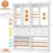 Customizable Closet System: Height-adjustable shelves and a sturdy hanging rod accommodate coats, shirts, bags, and hats, perfect for bedrooms, closets, or apartments.