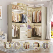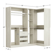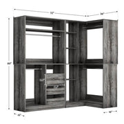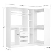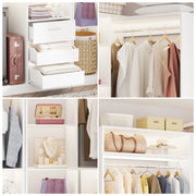 This combination wardrobe organiser with drawers can be used in a wardrobe or mounted in a corner, or you can purchase multiple pieces to install as a walk-in wardrobe, making the most of vertical space to create your personal wardrobe. The overall width of the wardrobe is 72 inches and includes 6 drawers, 4 hanging rods, multiple dividers with adjustable mounting heights, and this wardrobe shelf has a wall-mounted safety device that prevents it from tipping over due to excess clothing!