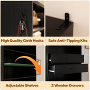 Enhanced Utility: Features 4 sliding drawers for small items and side hooks for umbrellas or coats, doubling entryway or bedroom organization.