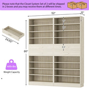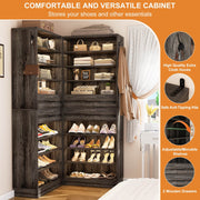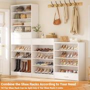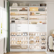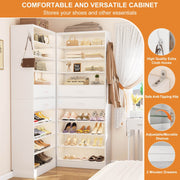 8 Tier Tall Shoe Rack Cabinet with 2 Drawers and Hooks, 2-Piece Set
