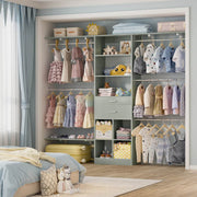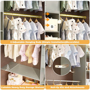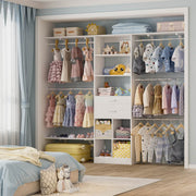 Customizable Design: Adjustable hanging rods and cuttable shelves (59"–96" width, 80" height) fit nurseries and closets of all sizes, perfect for kids or adults.