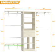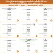 8FT Closet Organizer System with Wooden Drawers and Shelf Towers