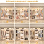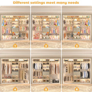 Maximized Storage: Includes 3 shelves, 5 hanging rods, 3 adjustable shelves, 2 drawers, and 4 cube organizers—ideal for clothes, shoes, and accessories.