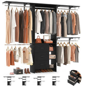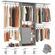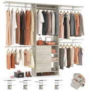 8FT Closet System with 3 Drawers, 3 Shelf Towers and 4 Hanging Rods