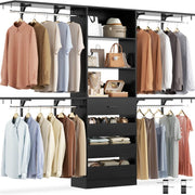 8FT Closet System with 4 Wooden Drawers, Closet Organizer with 4 Hanging Rods & Shelf Towers