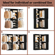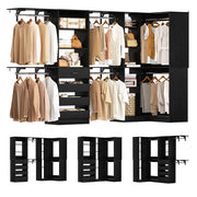 Heavy-Duty, High-Capacity Storage Solution: Engineered to hold up to 1,000 lbs, this system accommodates 150+ garments (dresses, jackets, suits) on dual hanging rods and 300-400 outfits across adjustable shelves. Integrated storage bins and drawers optimize vertical space for shoes, bedding, and accessories, ideal for families or small apartments.