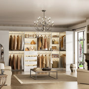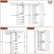 96"-128" L Shaped Freestanding Closet System with Drawers and Shelves