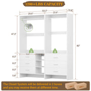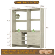 Closet Organizers Set of 2, Walk-in Closet System with Hanging Rods and Drawers