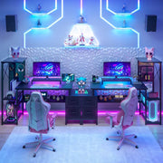 LED Gaming Desk: The wood gaming desk is equipped with a smart RGB LED light strip, providing over 60000 colors & 29 flashing modes.,allowing you to fully immerse yourself in your work or writing sessions. Also, enhance the gaming experience while you're playing.