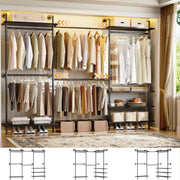 Expandable Industrial Pipe Clothing Rack, with 6 Storage Shelves