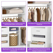 Functional Features for Effective Organization: With adjustable shelves, spacious drawers, and hanging rods, this closet organization set is designed for maximum efficiency. Store various sizes of shoes, clothes, jewelry, and more with ease. Customize it to fit your closet size or personal preferences for optimal organization.