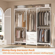 Heavy Duty Clothes Rack with 3 Fabric Drawers, Wood Stoarge Shelf Garment Rack
