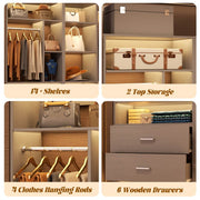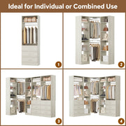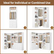 Maximized Storage & Space Efficiency: Combines two standalone wardrobe units with a corner tower, creating a versatile L-shaped storage solution. Enjoy ample space with drawers, shelves, and hanging rods, ideal for organizing 600+ clothing items and accessories without wasting valuable floor space.