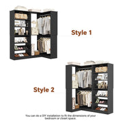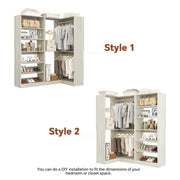 Corner Closet with Shoe Rack Tower for Space Optimization: Make the most of your corner space with this efficient L-shaped closet system. Featuring an adjustable 6-tier shoe rack tower, it accommodates everything from sneakers to high heels and boots. The tilt-proof design ensures your shoes stay securely in place, preventing them from falling off the rack.