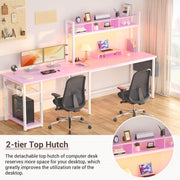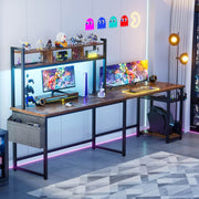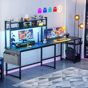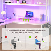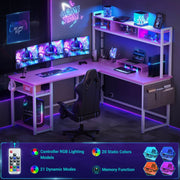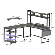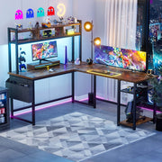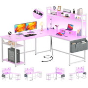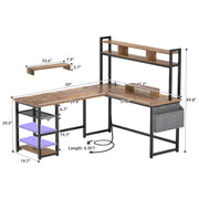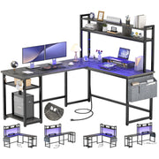 L Shaped Desk with Hutch, Outlets & LED Light, Reversible