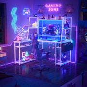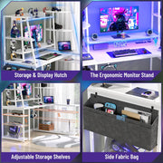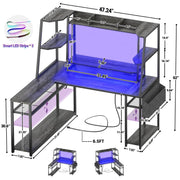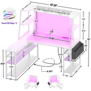 L Shaped Desk with LED Lights & Charging Station, Corner Desk with Hutch & Shelves