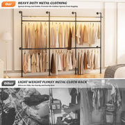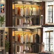 Pipe Clothing Rack with LED Illumination: Enhance your wardrobe with our industrial pipe clothing rack featuring vibrant RGB LED lights. Choose from over 20 colors and multiple flashing modes to set the perfect ambiance. The memory function retains your last setting, ensuring a seamless match with your home decor every time you power it on.