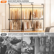 Heavy-Duty Construction: Built to last, this rack measures 118.3" L x 15.7" W x 90.55" H and supports up to 1000 lbs without deformation. Three detachable hanging bars adapt to various garment lengths and sizes, while compatibility with standard chests of drawers (up to 93 cm wide) ensures versatile storage solutions.