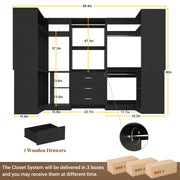 U-Shaped Heavy Duty Closet Organizer System with Drawers and Shelves, 3 Packs