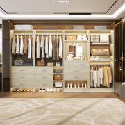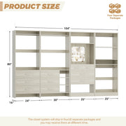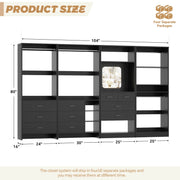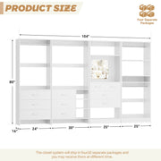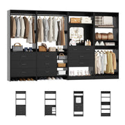 Walk in Closet Organizer System with Drawers, Shelves and Hanging Rods, 4-Piece Set
