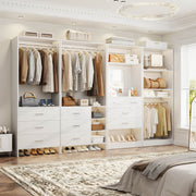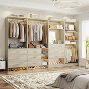 Aheaplus Heavy Duty CLoset Organizer System with 4 Set, Closet System with Drawers, Shelves, Hanging Rods and Mirror.