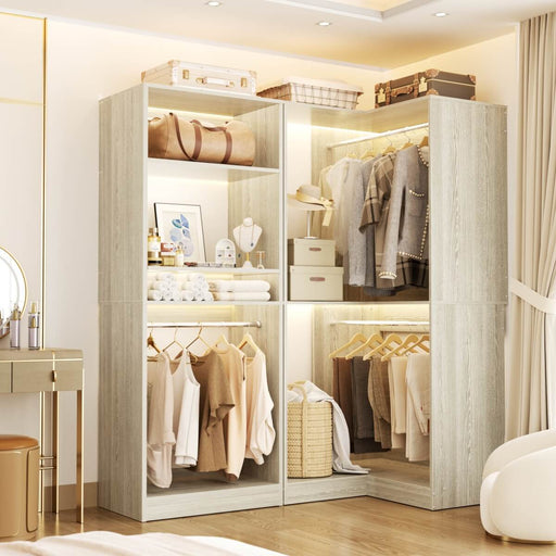 Aheaplus Walk-In Closet System - 3 Sets, L-Shaped Corner Wardrobe Organizer Versatile Storage Solution: Includes 5 wood drawers, 5 hanging rods, an...