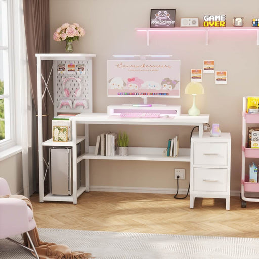 View full details47.2'' Gaming Desk with Hutch, LED & Outlets | Reversible Office Desk with Drawers