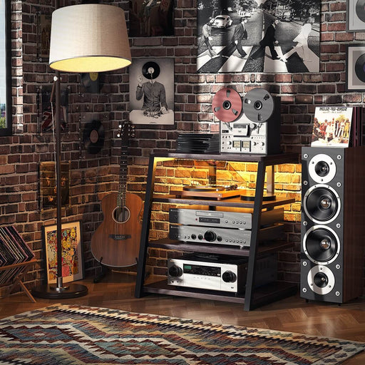 4-Tier Wooden AV Component Media Stand with Power Outlets and LED Lights