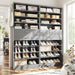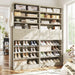 8 Tier Tall Shoe Rack Cabinet with 2 Drawers and Hooks, 2-Piece Set