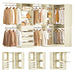 Heavy-Duty, High-Capacity Storage Solution: Engineered to hold up to 1,000 lbs, this system accommodates 150+ garments (dresses, jackets, suits) on dual hanging rods and 300-400 outfits across adjustable shelves. Integrated storage bins and drawers optimize vertical space for shoes, bedding, and accessories, ideal for families or small apartments.