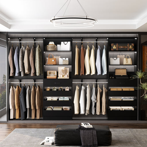 Walk-In Closet Organizer System with Corner, 4 Sets, 72-204 Inch Adjustable