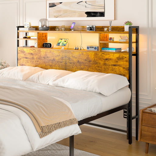 View full detailsQueen Size Bookcase Headboard with Storage, Power Outlets & RGB LED Lights