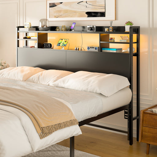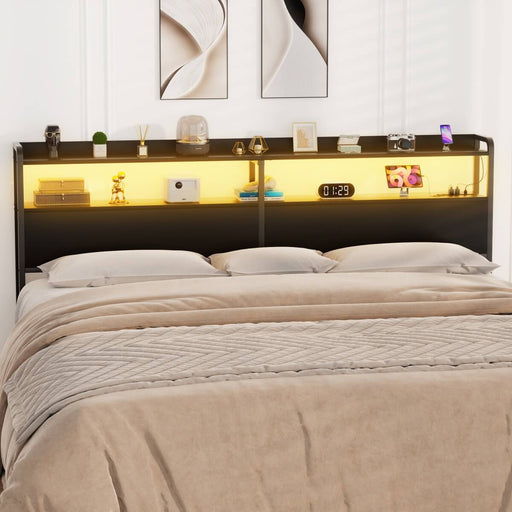 View full detailsQueen Size Bookcase Headboard with Storage, Power Outlets & RGB LED Lights