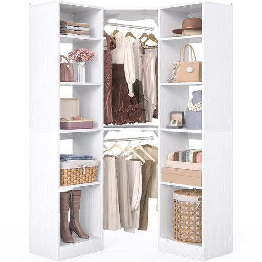 36'' Corner Closet System with 2 Hanging Rods & 5 Storage Shelves, Versatile Storage