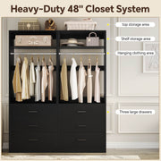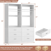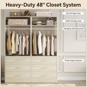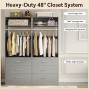 4FT Walk in Closet Organizer System with 4 Drawers and 2 Hanging Rods