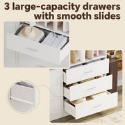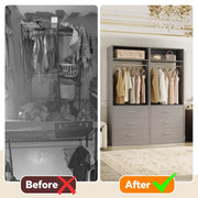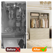 Ample Storage: Includes 6 large wooden drawers, 2 top shelves, and 2 hanging zones, capable of organizing over 300 garments.
